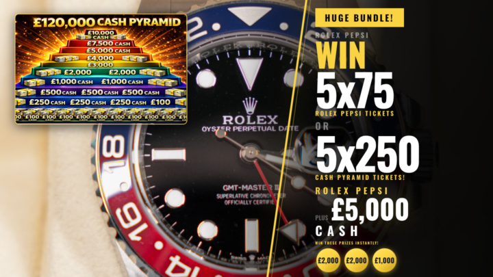 WIN A STUNNING ROLEX PEPSI OR £13,000 CASH INSTANTLY!