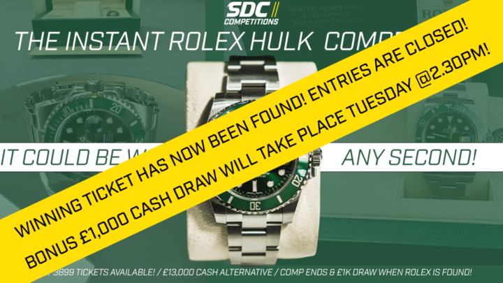 Home / Competitions Completed Competitions View our previous cars and their winners below, or use the filter to show what else people have won Car onlyCash Competitions onlyInstant win competitions onlyMotorbike onlyTech/Tool Competitions onlyTicket Bundle Competitions onlyWatches onlyAll Previous Competitions Show View winners HUGE ROLEX LAUNCH BUNDLE! WIN £5,000 OF ROLEX PEPSI TICKETS! 40% OFF NOW! View winners 5 HOURS ONLY! WIN £3,000 IN FUEL CARDS OR CASH AND 10x 100 CASH PYRAMID TICKETS! View winners FUEL CRISIS SPECIAL! WIN £5,000 IN BP FUEL CARDS AND 10x 100 CASH PYRAMID TICKETS! 50% OFF! View winners 5 HOURS ONLY! WIN £3,000 IN BP FUEL CARDS AND 10x 100 CASH PYRAMID TICKETS! View winners LAUNCH BUNDLE! WIN 3×500 CASH PYRAMID TICKETS & £3,000 CASH! 50% OFF! View winners WIN A ROLEX HULK OR £13,000 INSTANTLY & MORE! View winners FINAL ROLEX HULK BUNDLE! WIN 20% OF ROLEX HULK TICKETS & £3,000 CASH! 40% OFF! View winners WIN 10% OF ROLEX HULK TICKETS & £3,000 CASH! NOT TO BE MISSED! View winners MK2 GOLF R32 SHOW CAR PLUS £75,000 OF INSTANT WIN PRIZES! View winners ⭐FINAL MONSTER R32 BUNDLE! WIN £10K CASH & 10×300 MK2 GOLF or 10×90 ROLEX TICKETS! 50% OFF NOW! 1 2 3 … 14 >
