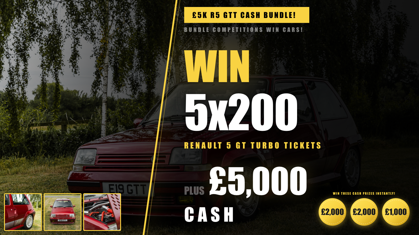 🚗 RENAULT 5 GT TURBO – £5,000 CASH & 5×200 TICKET BUNDLE 🚗