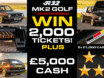 THE FINAL 2 BUNDLES NOW! WIN A MASSIVE £5,000 CASH PLUS 2,000 TICKETS FOR FRIDAY’S MAIN MK2 R32 DRAW! WHEN YOU ENTER, YOU HAVE 5x CHANCES TO WIN £1,000 CASH INSTANTLY, PLUS 10x CHANCES TO WIN 200x ENTRIES FOR FRIDAY’S MAIN MK2 GOLF DRAW & MORE!