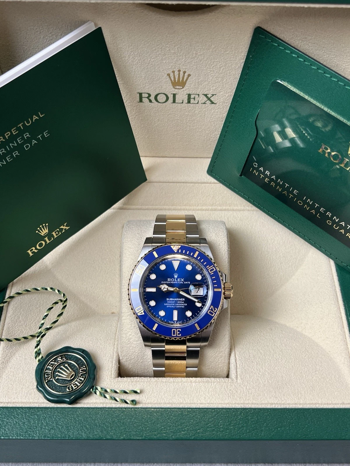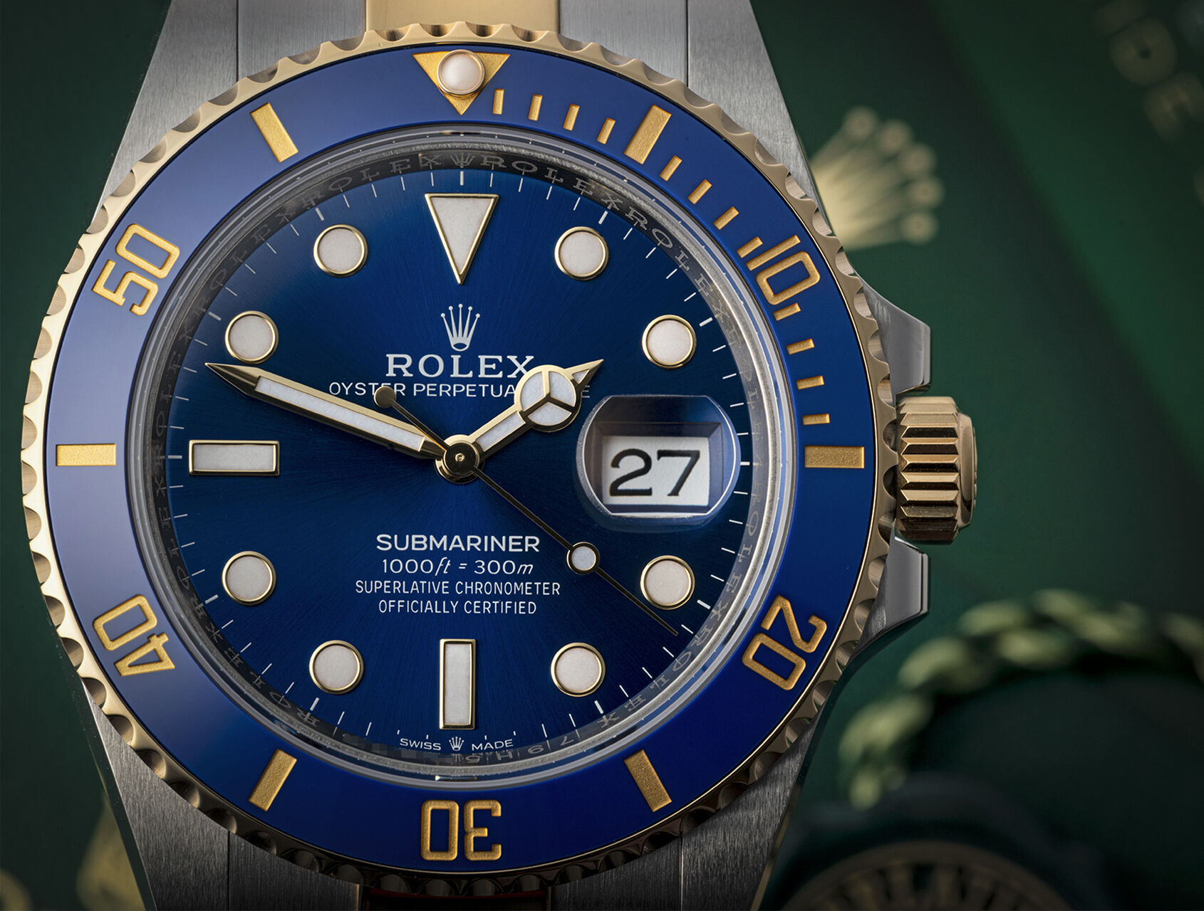 WIN THIS STUNNING 18K GOLD BLUE CERAMIC 2 TONE ROLEX SUBMARINER, WITH 1/2 GOLD BLUE DIAL WITH 41MM DIAL AND GOOD FOR YOU 300M DEEP SEA DIVERS TOO!