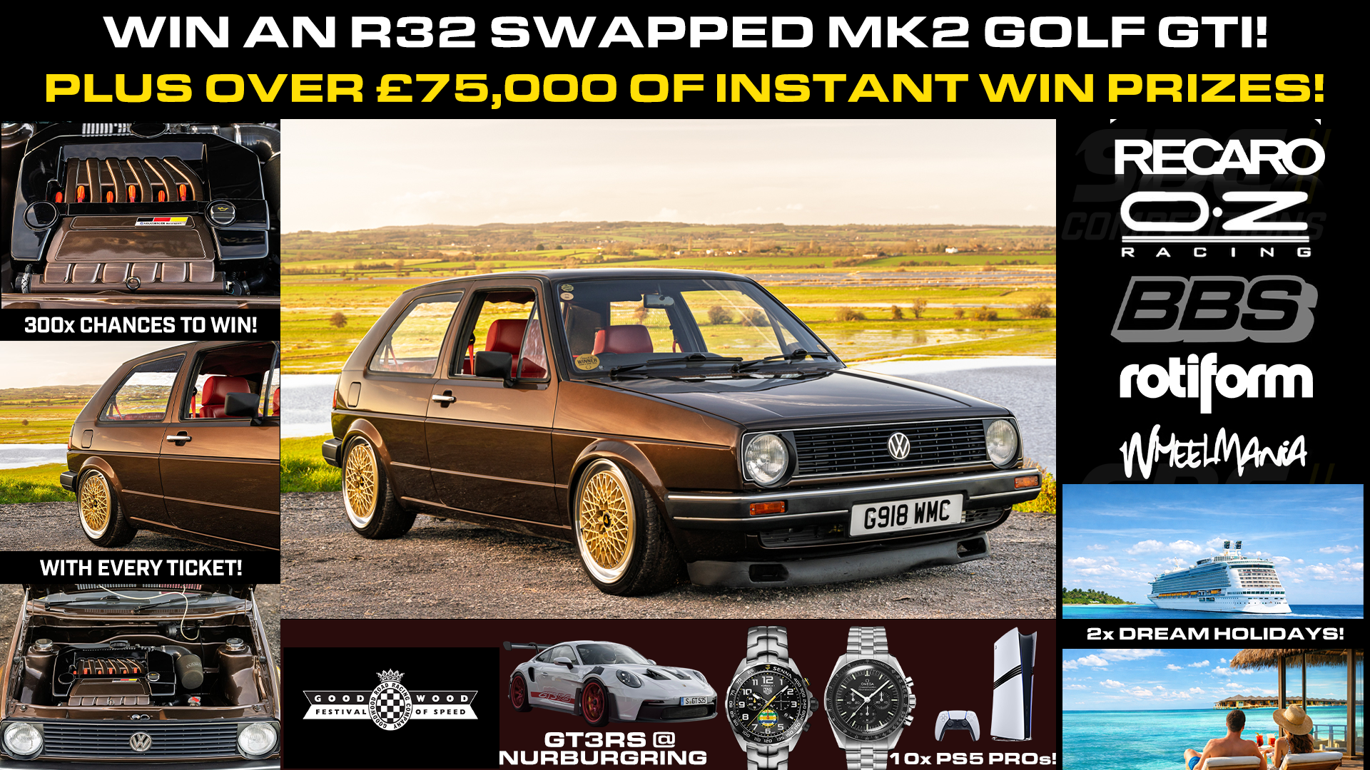 ENTRIES ARE NOW CLOSED – CONGRATULATIONS TO SIMON BRADSHAW FOR WINNING THE R32 SWAPPED MK2 GOLF WITH TICKET #3516!