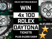 Win a WIN A HUGE 4x 100 ROLEX DAYTONA TICKETS & £4,000 CASH! LIFE CHANGING!