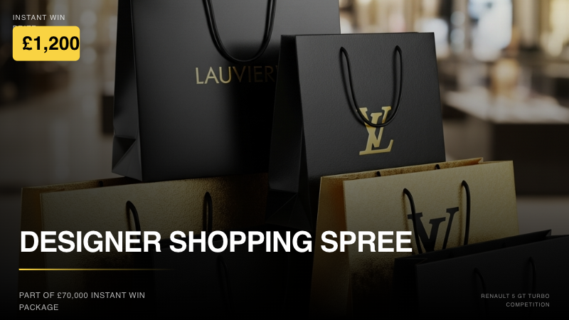 - Designer Shopping Spree is for £1200 and is valid at Selfridges and various other retailers