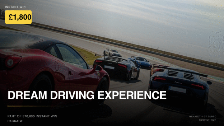 | 50x FREE RENAULT 5 GT TURBO TICKETS (£150 WORTH) | WON BY TOM SYKES | 8850 |