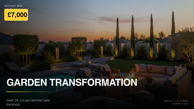 - £7,000 Garden Makeover includes all design, labour and products you want in your garden up to the value of £7,000! Why not pop a hot tub in too?