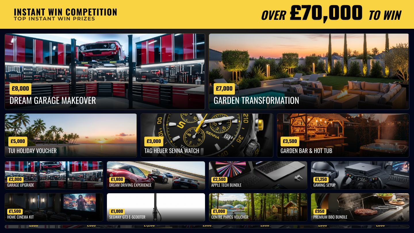 Limited to just 48778 tickets – This competition has THE BEST PRIZES we have ever offered for instant win competitions, Over £70,000 to win! it is well worth having a go at… and then another!