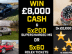 Win a WIN £8K CASH! PLUS EITHER 5×60 ROLEX PEPSI OR 5×200 SUPERCHARGED M5 TICKETS! 40% OFF!