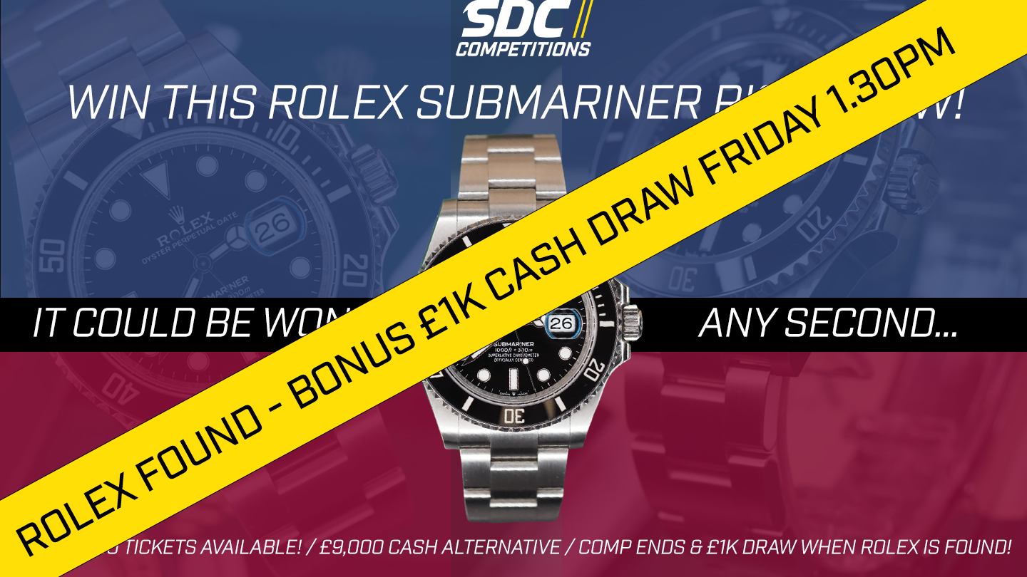 LIMITED TO JUST 2400 TICKETS // £9.95 PER TICKET // WHEN THE ROLEX IS FOUND, THE COMPETITION ENDS // £1,000 DRAW FOR ALL ENTRANTS (REGARDLESS OF AMOUNT OF TICKETS SOLD WHEN ROLEX IS WON)